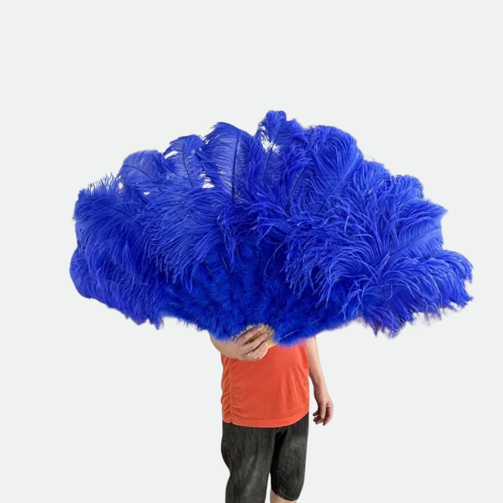 Éventail plume bleu royal géant : une présence scénique majestueuse